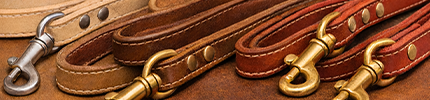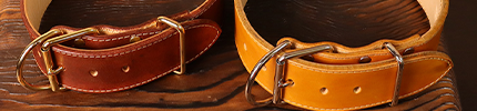 大型犬のために、本革の首輪・リードをひとつひとつ手作りしています。